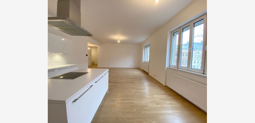 In einem attraktiven Altbau in einer ruhigen Seitengasse zwischen Wirtschaftskammer und Wiedner Hauptstraße befindet sich im 2. Obergeschoß (über Mezzanin) diese erstklassige 4-Zimmer Altbau-Wohnung mit großer Loggia. Die Wohnung bietet folgende Aufteilung: einladendes Vorzimmer, ostseitiges Wohnzimmer mit offener Küche mit Kochinsel, drei Schlafzimmer, eines davon mit Zugang zur hofseitigen, westseitig ausgerichteten Loggia, elegantes Badezimmer, ausgestattet mit Wanne, walk-in Dusche, Waschmaschinenanschuss und WC sowie ein weiteres extra WC. Die Wohnung gelangt zur befristeten Vermietung auf 3 Jahre. Kündigungsverzicht 1 Jahr.