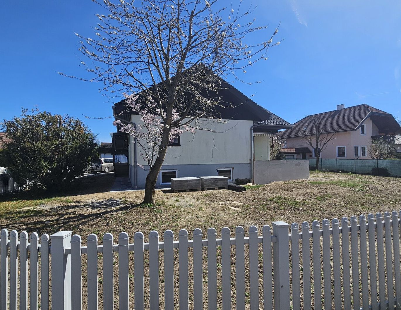 Auch im Außenbereich hat diese Immobilie einiges zu bieten: Ein Carport sorgt für bequemes und geschütztes Parken direkt vor dem Haus, während ein praktisches Gartenhaus zusätzlichen Stauraum schafft. Die Terrasse sowie die Außenanlagen werden in den kommenden Wochen fertiggestellt und bieten zukünftig einen attraktiven Bereich zum Entspannen und Genießen im Freien.