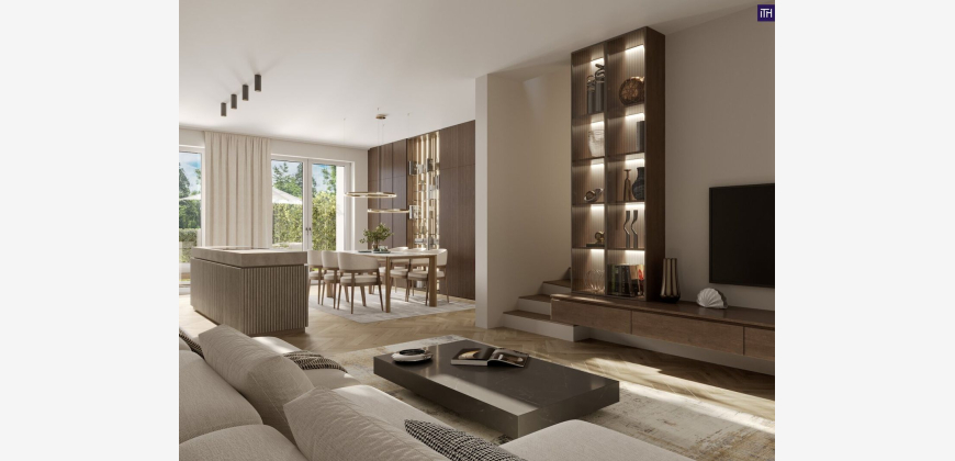 direkt am Wasser und am Murradweg profitieren. Jeder Einheit steht ein großzügiger Garten zur Verfügung, der Raum für Erholung und Privatsphäre schafft! Die durchdachten Grundrisse bieten auf 103,71 m² Wohnfläche Platz für alles was das Herz begehrt! Der offene Wohn-Essbereich mit einer Fläche von 41 m² bildet das Herzstück des Hauses und eignet sich perfekt für gemeinsames Kochen, Essen und Entspannen. Im Obergeschoss finden Sie die 3 Schlafzimmer , wovon zwei mit direktem Zugang zum Balkon und viel Privatsphäre begeistern. Durch zusätzliche Abstellräume, einen Wirtschaftsraum und clever genutzte Flächen wie den Stauraum unter der Treppe sind die Villen optimal für den Alltag einer modernen Familie gestaltet.