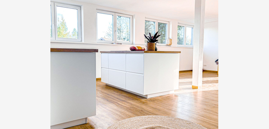 Dann pass auf! Diese Wohnung hier ist etwas Besonderes. Mit ihren 130m² im 1. Stockwerk bietet sie Platz für die ganze Familie und lässt keine Wünsche offen. Doch was macht sie so einzigartig? Vielleicht die große, neue, hochwertige Wohnküche mit Kochinsel, die 3 hellen, getrennt begehbaren Zimmer, der Blick über Wiesen und Wälder aus der Glasfront im Wohnzimmer, dass sie bis ins kleinste Detail durchdacht ist, oder der riesige Garten , der nach Absprache mitbenutzt werden kann und sogar die Möglichkeit bietet im angrenzenden Bach schwimmen zu gehen? Klingt spannend und du möchtest dir selbst ein Bild machen? Dann melde dich gerne bei uns und vereinbare einen Besichtigungstermin.