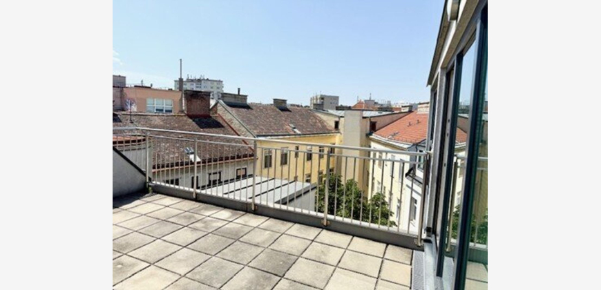Das Mietobjekt liegt im Dachgeschoß (mit Aufzug) in einem gepflegten Otto-Wagner Jugendstilhaus und verfügt über rund 82 m² Wohnnutzfläche und 2 Terrassen mit gesamt ca.33 m².