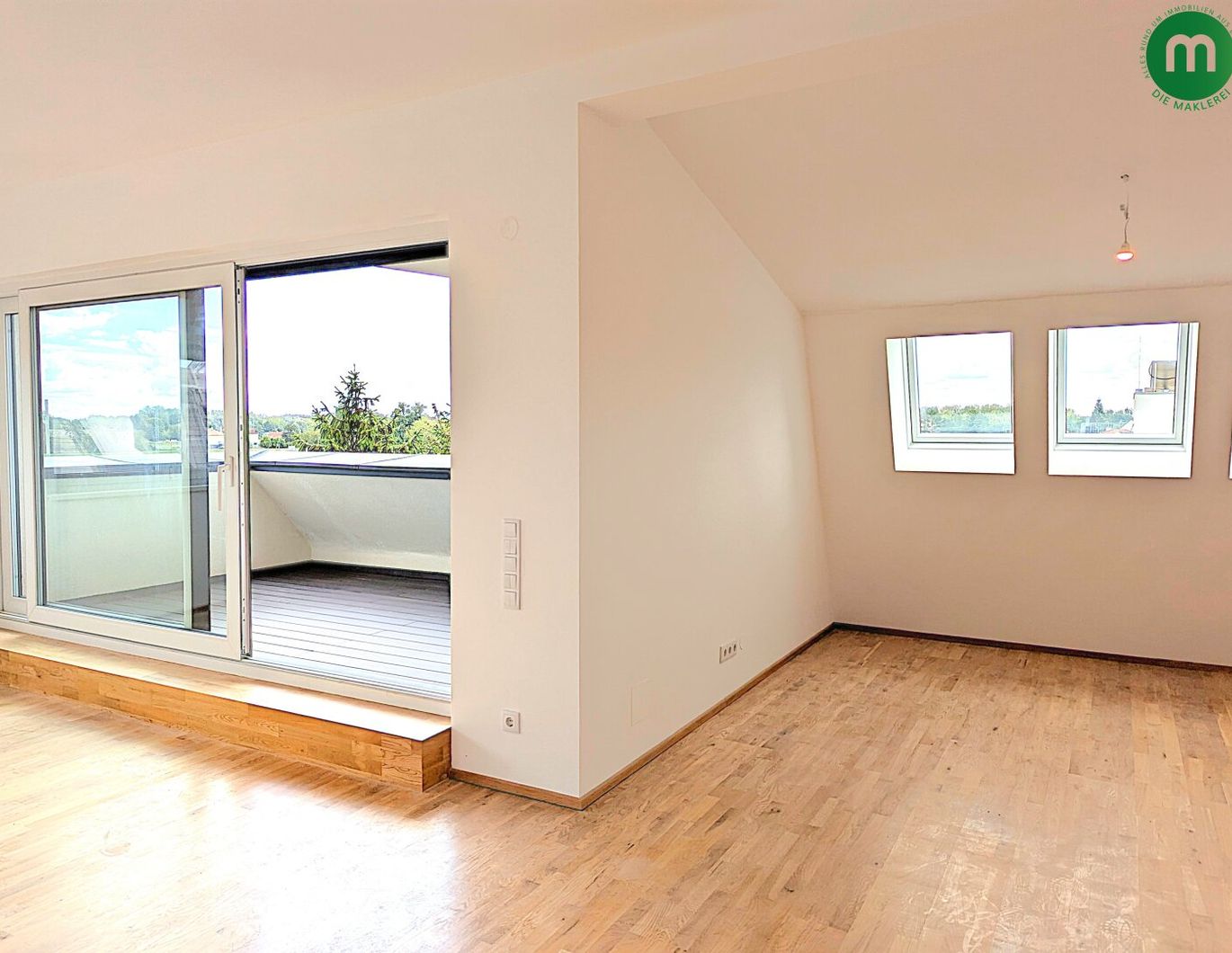 Im grünsten Teil der Donaustadt, nur wenige Minuten von der Lobau und der Donauinsel entfernt, erwartet Sie diese außergewöhnliche Dachgeschoßwohnung. Auf rund 97 m² Wohnfläche eröffnet sich Ihnen ein modernes Zuhause, das durch seine großzügige Raumaufteilung, hochwertige Ausstattung und eine sonnige Terrasse besticht. Der Aufzug bringt Sie direkt in Ihre private Wohnetage