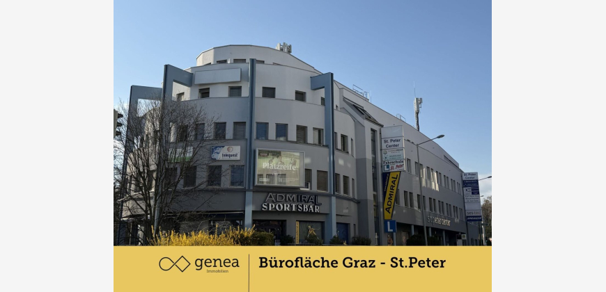 verwirklichen lassen. Die barrierefrei zugänglichen Büroflächen in unserem Bürogebäude bieten Ihnen die perfekte Gelegenheit, ein Arbeitsumfeld nach Ihren Wünschen und Vorstellungen zu schaffen. Die Bürofläche befinden sich im dritten Stockwerk unseres beeindruckenden Bürogebäudes und bieten Ihnen den Komfort und die Privatsphäre, die Sie benötigen. Die öffentlichen Verkehrsmittel in Form von Bus und Straßenbahn, sind direkt vor dem Gebäude und bieten eine hervorragende Anbindung an die umliegenden Gebiete. Wenn Sie ein Auto besitzen, können Sie sich in unserer hauseigenen Tiefgarage sicher und bequem parken, was besonders in der belebten Gegend von St. Peter ein großer Vorteil ist. Der Mietpreis für einen Abstellplatz beträgt EUR 85,00 pro Monat und beinhaltet Betriebskosten und gesetzliche Mehrwertsteuer. Bei uns können Sie sich sicher sein, dass Sie eine einzigartige und flexible Arbeitsumgebung schaffen können, die Ihren Bedürfnissen und Anforderungen entspricht. Kommen Sie vorbei und entdecken Sie die Möglichkeiten, die Ihnen unser Bürogebäude in St. Peter bietet! Provision: gemäß Immobilienmakler-Verordnung 2010 sowie Maklergesetz 1996. Anbot unverbindlich und freibleibend.