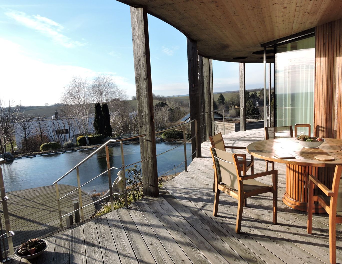 Vorraum Wohnraum mit Essbereich Offene Küche 2 Schlafzimmer Gäste-/Bibliothekszimmer Vorraum, der zu einer Miniküche adaptiert werden kann Badezimmer mit Wanne und Klafs-Wärmekabine mit Liege Badezimmer mit Dusche und WC separates WC Garderoberaum Hauswirtschaftsraum Technikraum Atelier-/Ausstellungs- und Büroraum LAN im Haus in das Wohnzimmer, beide Schlafzimmer und den Atelier-Büroraum WLAN im Technikraum für das gesamte Haus Terrasse überdacht, ca. 75 m2 groß, teilweise windgeschützt Badedeck, ca. 25 m2 groß mit Dusche (Warm- und Kaltwasser) Schwimmteich, ca. 110 m2 groß mit einem ca. 60 m2 großen Schwimmbereich schattiger Bereich unter Bäumen für Liegestühle gepflasterter Gartenplatz für Tisch und Stühle Das Haus besitzt Einbaumöbel und eine Einbauküche.