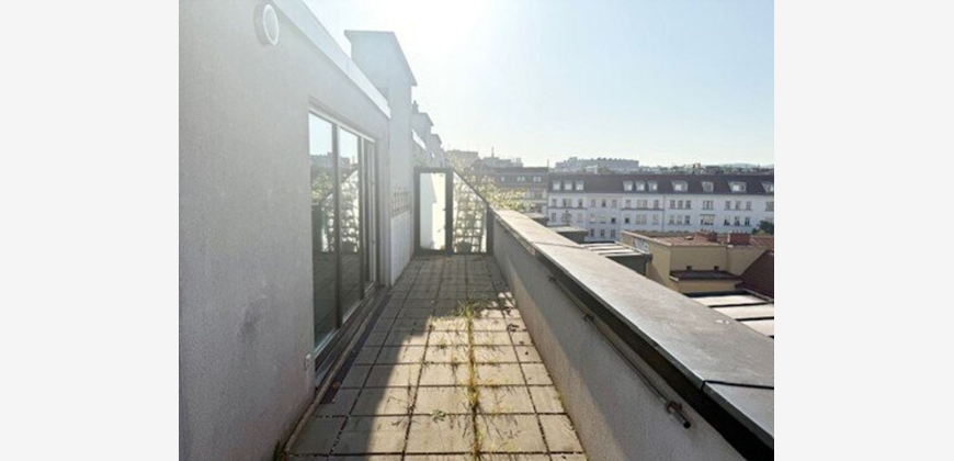 Die DG-Maisonettewohnung (Aufzug) liegt in einem eleganten Otto Wagner Haus und verfügt über rund 79 m² Wohnnutzfläche und einer hofseitigen Terrassenfläche von ca.33m2.