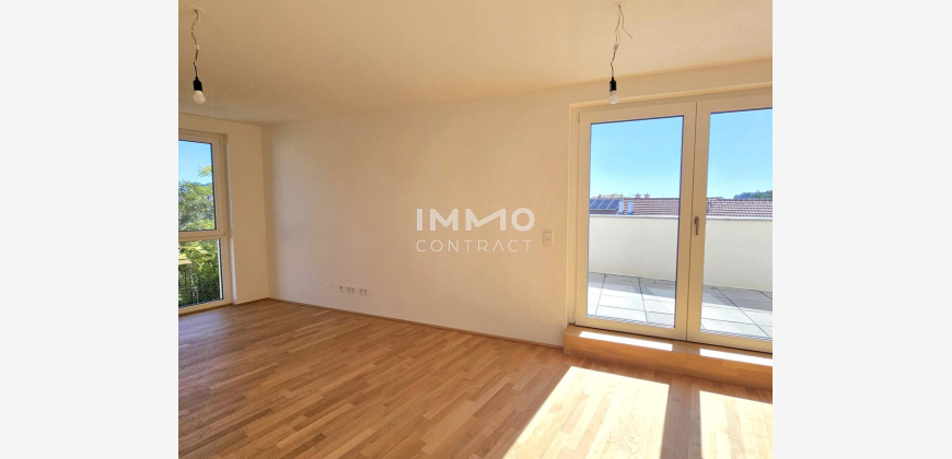 Haus 6 / Top 8 Diese individuelle, lichtdurchflutete 2-Zimmer-Wohnung ist nach Süden ausgerichtet und befindet sich barrierefrei im Dachgeschoß. Sie besteht aus einer großen Wohnküche und Ausgang auf die ca. 24 m2 große Dachterrasse. Das Wohn-/Esszimmer ist mit seinen 37 m2 groß genug dimensioniert, dass sogar ein Homeoffice Platz untergebracht werden kann. Auch vom Schlafzimmer haben Sie Zutritt zur Terrasse, das en-suite Badezimmer ist mit Dusche und Waschmaschinenanschluss ausgestattet und zeitlos weiß verfließt. Des Weiteren finden Sie noch ein großes Vorzimmer und ein separates Gäste-WC vor. Ihrer Wohnung ist natürlich auch ein ca. 7 m2 großes Kellerabteil zugeordnet. Vereinbaren Sie noch heute einen Besichtigungstermin. Ich freue mich, Ihnen dieses traumhafte Projekt näher bringen zu dürfen! Frau Simone VASICEK 0676 / 841 420 605