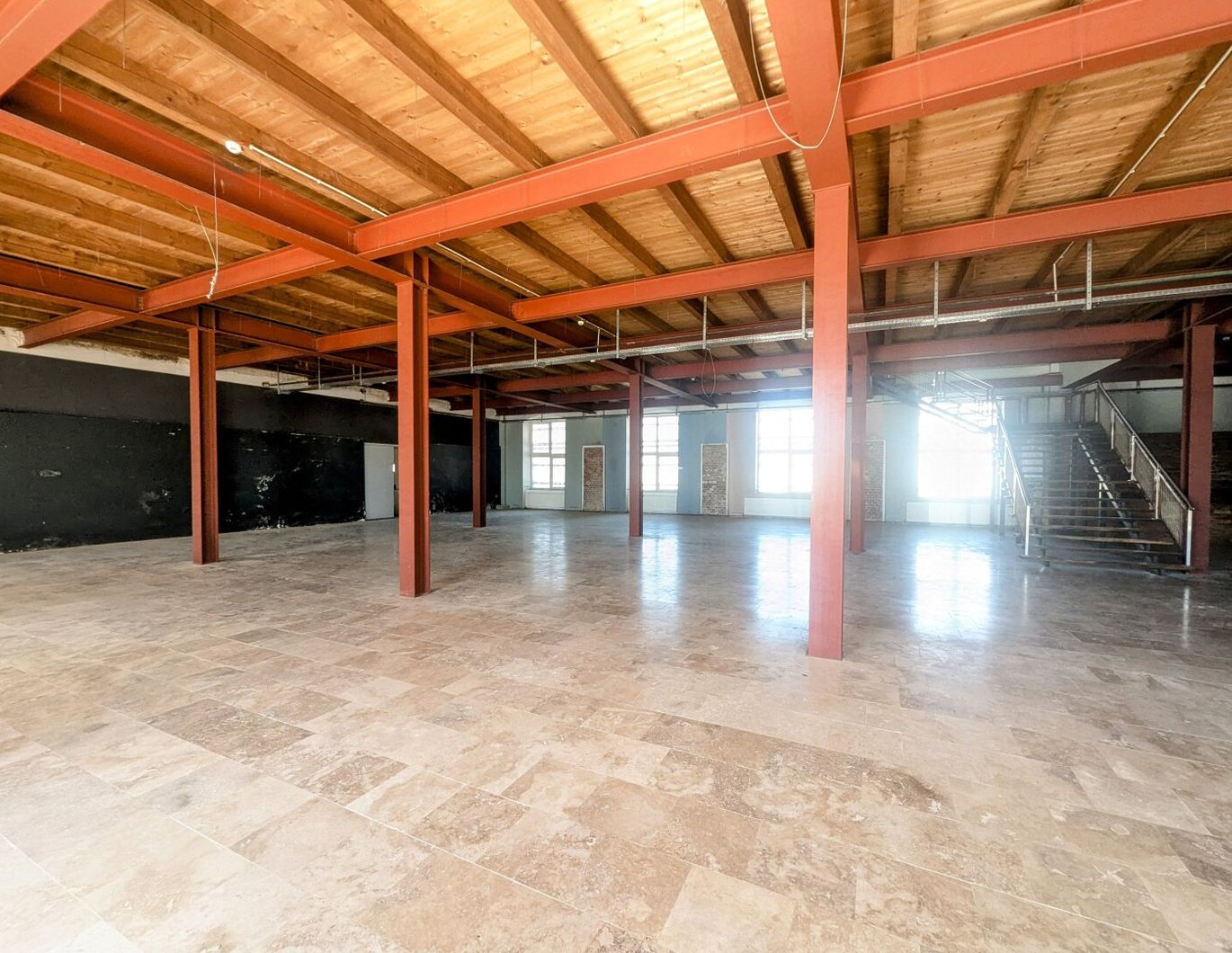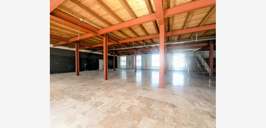 Die Gesamtfläche von 1.196 m² erstreckt sich über zwei Geschosse und bietet somit ausreichend Raum für Verkauf, Lager oder Büros . Die rundum holzverkleidete Fassade verleiht der Fläche nicht nur einen auffälligen Look, sondern sorgt auch für eine außergewöhnliche Atmosphäre. Ein Lastenaufzug erleichtert die Logistik und den Transport von Waren.