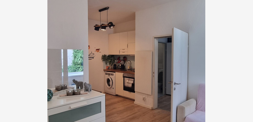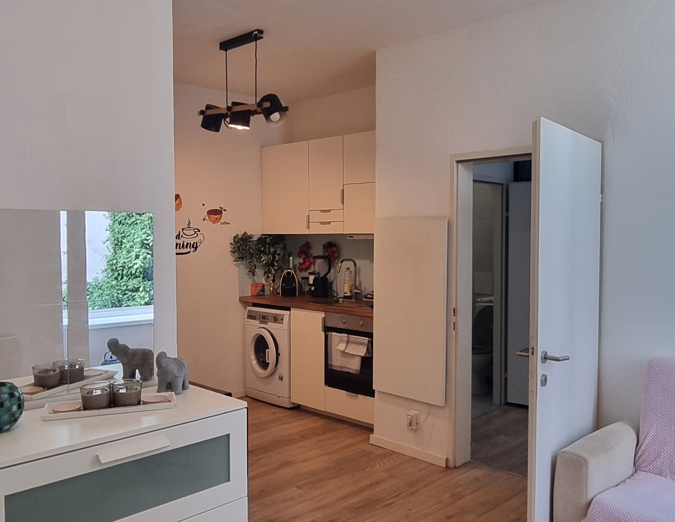 Die Wohnung hat eine Bruttofläche von 35,69m². Im Zuge der Sanierung wurden Rigips-Wände eingezogen und die tatsächliche Wohnfläche beträgt nun 27,56m².
