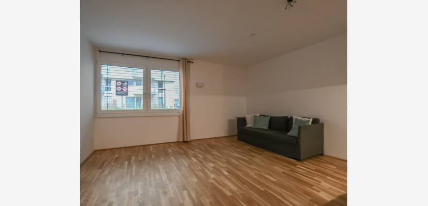 Zur Vermietung gelangt eine 2-Zimmer Wohnung in idyllischer und urbaner Atmosphäre. Die lichtdurchflutete Wohnung verfügt über einen Vorraum, einen Abstellraum, eine separate Toilette mit Handwaschbecken, ein modernes Badezimmer mit Badewanne und Waschmaschinenanschluss, einen großzügigen Wohnbereich mit einer modernen, offenen Küche sowie über ein Schlafzimmer. Die 3-fach-verglasten Fenster sind mit einem hochwertigen Sonnenschutz ausgestattet. Die Wohnräume sind mit schönem Parkettboden ausgestattet und die Nassräume mit Fliesen verlegt. Weiters verfügt die Wohnung über ein Kellerabteil. Im Haus befinden sich Kinderwagen- und Fahrradabstellräume. Bei Bedarf kann ein Garagenplatz in der hauseigenen Tiefgarage um monatlich EUR 160,00,- angemietet werden. Heizung und Warmwasser werden nach Verbrauch abgerechnet.