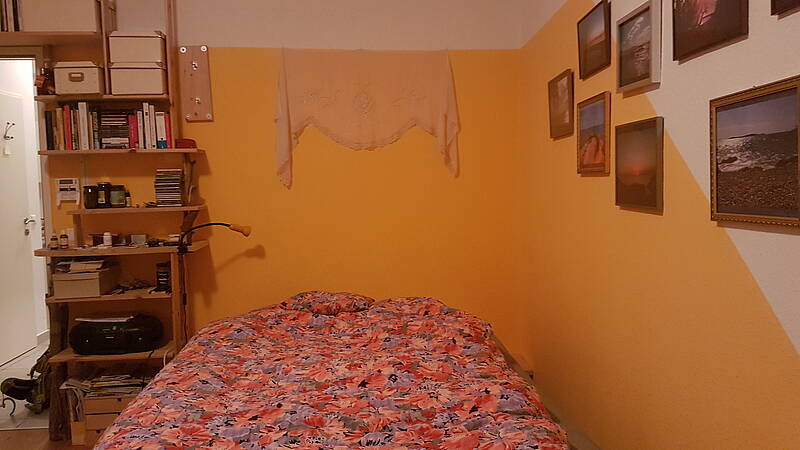 2 windows go to green quiet inner courtyard with 2 linden trees, cool in summer, easy to heat in winter, house from 1900, furniture handmade and wooden, fully furnished, 2 beds 140×200, Wlan unlimited