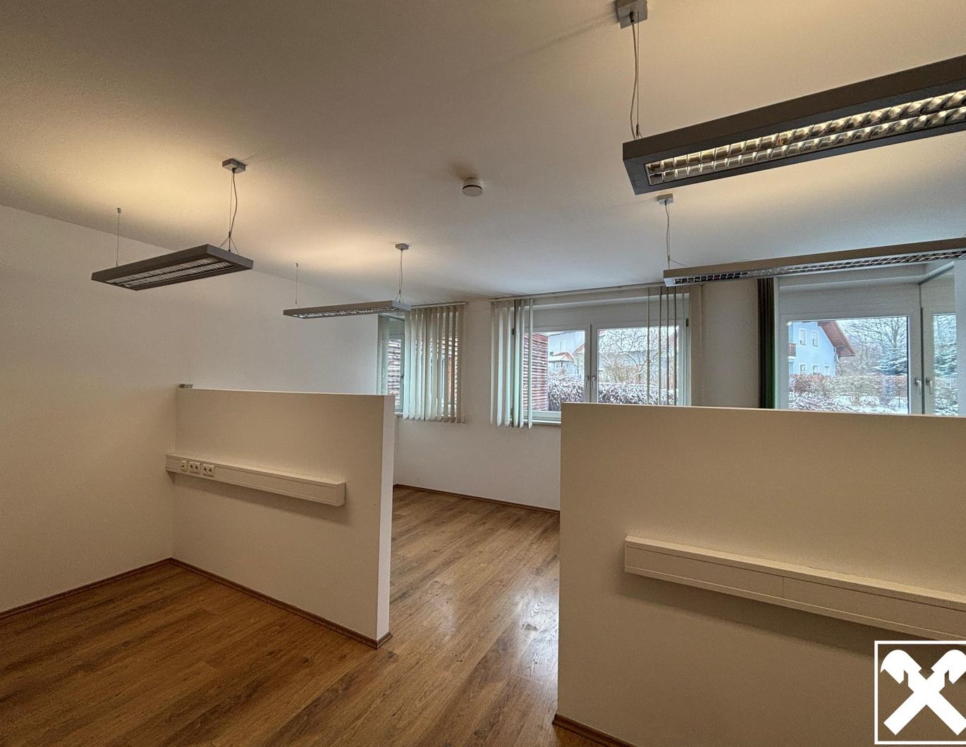 Großzügige Bürofläche mit rd. 142 m² (7 Büros) und rd. 115 m² Nebenflächen (Küche, Sanitäranlagen, Besprechungsräume) Ausreichend Parkplätze und Lagerflächen Sanierungsbedürftige Wohnung bei Bedarf vorhanden A9 schnell erreichbar Nicht barrierefrei
