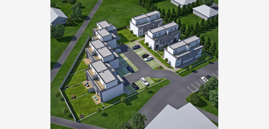 Designkunststofffenster mit 3-fach Verglasung Rollläden für Sonnen- und Einbruchsschutz Hochwertige Aluminiumeingangstüre pro Einheit 2 Freiparkplätze Gute Verkehrsanbindung bis zu 170 m² Gartenfläche pro Einheit