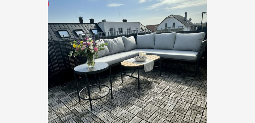 Diese Dachgeschoßwohnung in 2231 Strasshof an der Nordbahn besticht durch ihre ruhige Ost-Ausrichtung. Die