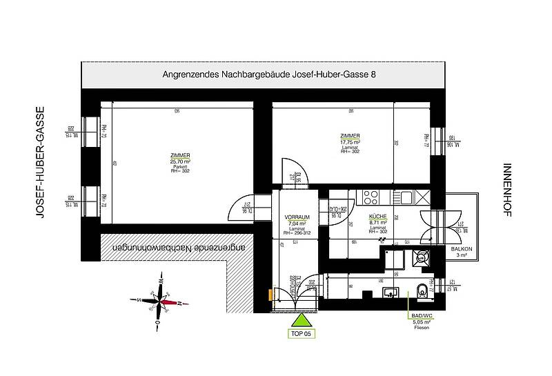Heller 2 ZIMMER-Altbau + ruhiger Balkon 3m² + extra Küche möbliert + Bad mit Dusche / WC und Fenster + nähe Hauptbahnhof!Auf einer Wohnfläche von ca. 63m² verteilen sich am Anfang der Josef-Huber-Gasse nähe Hauptbahnhof im 2. Obergeschoß ohne Lift perfekt wie folgt: 2 Zimmer, davon 1 großes und helles Wohn- Esszimmer ca. 25,7m² (getr. begehbar), 1 größeres und ruhiges Schlafzimmer ca. 17,7m² - Innenhof (getr. begehbar), extra Küche möbliert ca. 8,7m² mit ruhigen Balkon ca. 3m² - Innenhof (Einbauküche inkl. Geschirrspüler etc.), Vorraum, Bad ca. 5m² mit Dusche / WC / Sprossenheizkörper / Fenster und WM-Anschluss, Parkettböden, Rollläden, UPC- bzw. Telekom-Anschluss und die Wohnung wird mit Fernwärme beheizt (exkl. Heizung - wird direkt mit dem Anbieter abgerechnet).Die komplette Wohnung wird von der Malerfirma frisch ausgemalt, Sanitäranlagen werden vom Installateur überprüft, Rollläden werden überprüft, Elektrik bzw. Sicherungskasten werden überprüft usw. und nach Beendigung der Arbeiten wird die Wohnung noch von der Firma gereinigt!Günstige Parkmöglichkeit für Bewohner gibt es in der "blauen Zone" vor dem Haus oder es kann wenige Schritte entfernt ein Parkplatz in der Tiefgarage extra angemietet werden. Die Wohnung ist durch die sehr gute Aufteilung sowie zentrale Lage, optimal geeignet für ein Pärchen oder berufstätige Singles (z.B. Studenten), da sie um Beihilfe ansuchen können (Wohnunterstützung).Sehr gute GVB-Verbindung mit dem Bus: 31er, 32er, 33er, 40er, 67er mit Anbindung zum Jakominiplatz, FH-Joanneum, KF-Universität, Kunst- bzw. Musik-Universität, Campus Alte TU-Graz (Rechbauerstraße), Campus Neue TU-Graz (Steyrergasse), Campus TU-Inffeld (St. Peter), LKH-Graz, UKH-Graz, Gösting usw.!Mietbeginn: 01.11.2025