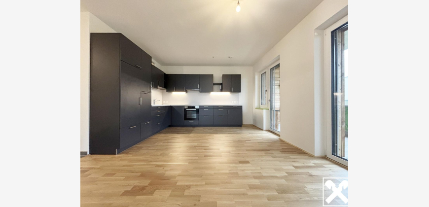 Top 1.4 Aufteilung: praktischer Vorraum, Schlafzimmer, Abstellraum, Badezimmer, heller gemütlicher Wohn-/ und Essbereich mit perfekt integrierter Einbauküche sowie eine großzügige Loggia mit ca. 32,36 m². Ein Kellerabteil sowie ein Tiefgaragenstellplatz gehören zur Wohnung.