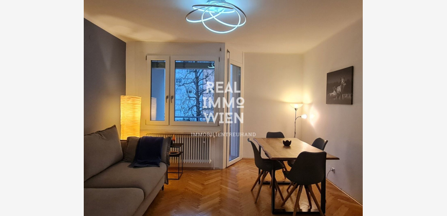 Die stilvolle Wohnung ist aufgeteilt in Vorraum, Wohnzimmer, Küche, Badezimmer mit separatem WC, 2 Schlafzimmer und Balkon.