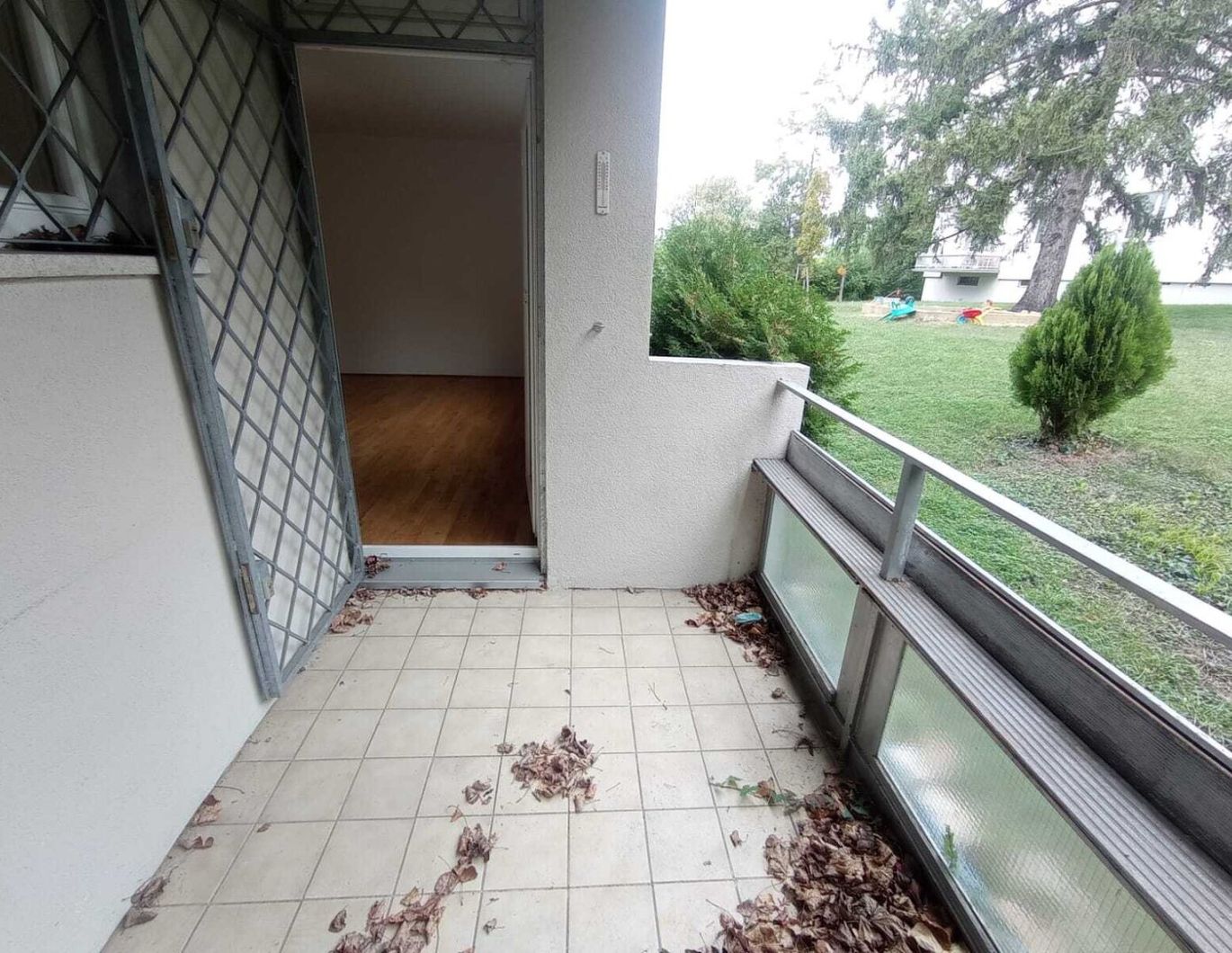 Die Wohnung liegt im Erdgeschoß und besteht aus 3 getrennt begehbaren Zimmern ( zwei größeren und einem kleineren Zimmer ) , eines davon mit Ausgang auf die ca. 6 m² große Loggia , einer Küche, Bad mit Wanne und Waschbecken, einer separaten Toilette, einem Abstellraum und einem zentralen Vorraum.