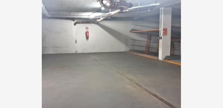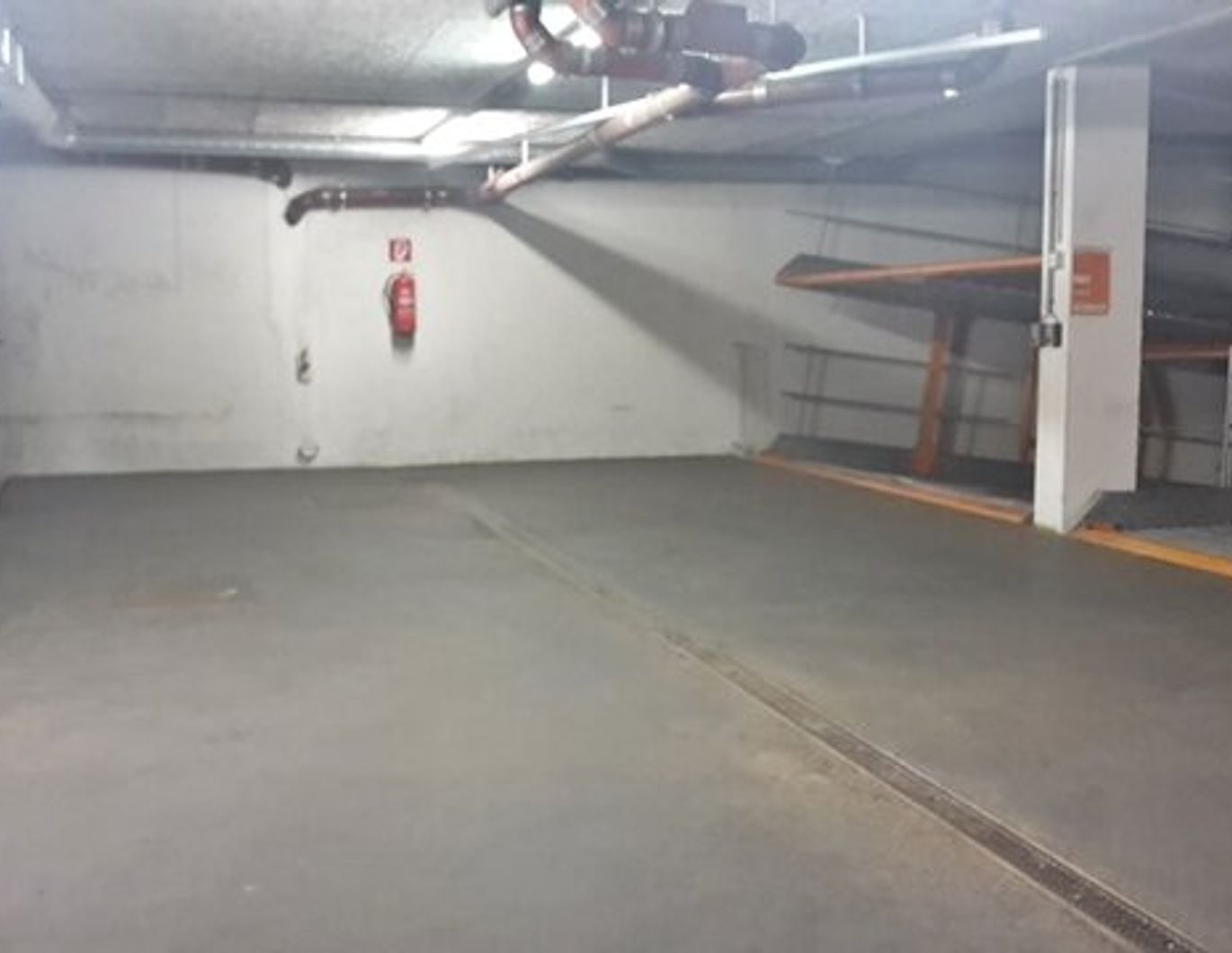 Tiefgaragenstellplatz für Klein bis Mittelklassefahrzeuge in einer trockenen Tiefgarage BJ 1993 eines Wohnhauses: Hebebühnentechnik