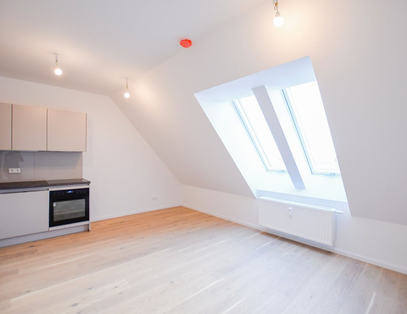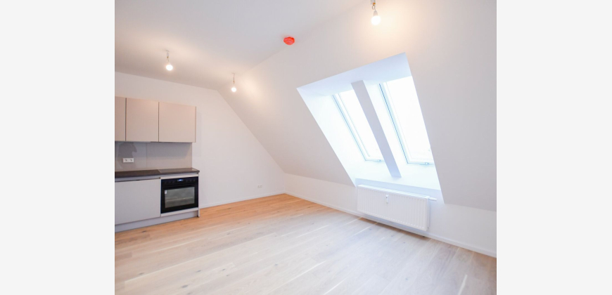 Diese frisch sanierte, ca. 55 m² große 2-Zimmer-Wohnung befindet sich im Dachgeschoß eines gepflegten Hauses in der Meidlinger Hauptstraße 78. Die zentral gelegene Wohnung ist ideal für Singles oder Paare geeignet. Der durchdachte Grundriss bietet einen geräumigen Vorraum, ein separates WC, ein modernes Badezimmer mit Dusche und Waschmaschinen-Anschluss, ein separates Schlafzimmer mit Schrankraum sowie ein helles Wohnzimmer mit Küche und Abstellraum. Die Küche ist vollständig ausgestattet und punktet mit zeitlosem Design. Der hochwertige Parkettboden, die stilvollen Fliesen und die modernen Sanitäreinrichtungen sorgen für ein angenehmes Wohngefühl.