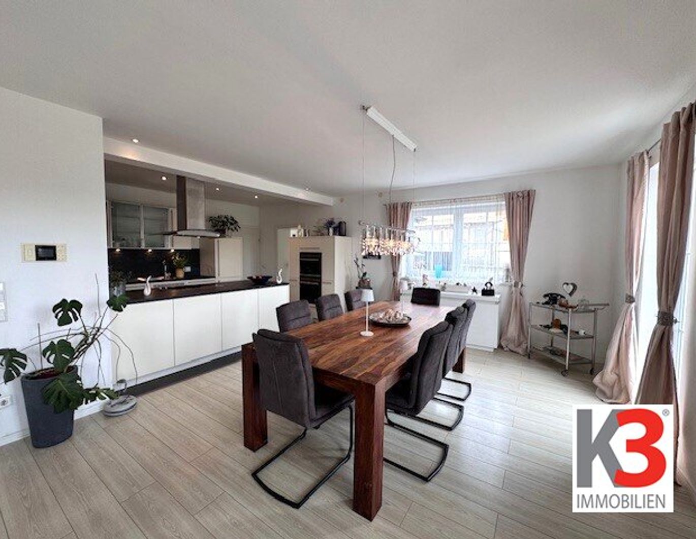 - Durchdacht geplant ist die traumhafte Wohnküche. Die hellen Fronten und die dunkle Arbeitsplatte verleihen der Küche ein edles Erscheinungsbild.