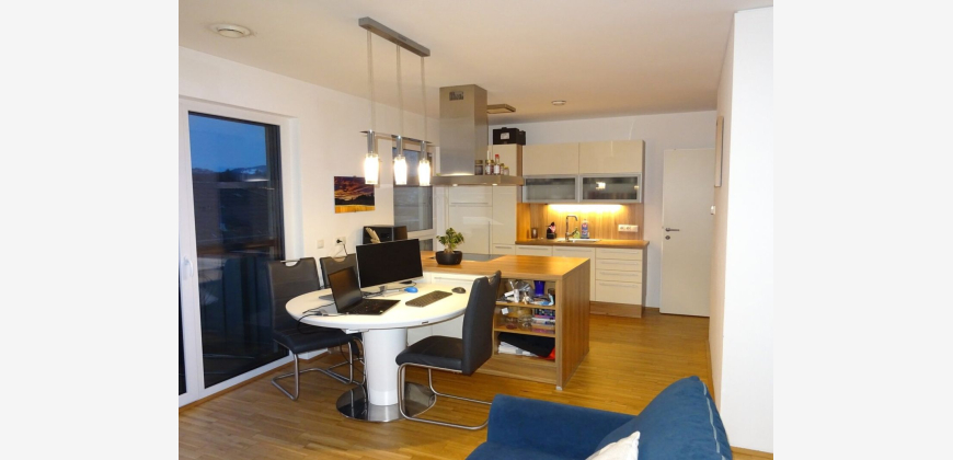 Diese besondere 2-Zimmerwohnung befindet sich in einem Top Zustand und verfügt über eine Wohnfläche von ca. 43 m². Diese sonnendurchflutete Stadtwohnung befindet sich im 2. Stockwerk und verfügt über einen einladenden Eingangsbereich, ein großzügiges Wohnzimmer mit vielen Fensterelementen, eine geschmackvolle Küche mit angrenzendem Essbereich, ein schönes modernes Badezimmer mit Dusche und WC sowie ein separates Schlafzimmer. Vom Wohnzimmer gelangen Sie auch direkt auf die großzügige Loggia. Der herrliche Blick auf die umliegende Berglandschaft schafft dabei eine absolut entspannte Atmosphäre. Eine zeitlose Architektur, gepaart mit den hochwertigsten Materialien und idealer
