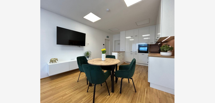 Perfekt für Stadtliebhaber, die auf Komfort nicht verzichten möchten. Großzügige Spazierwege und Grünflächen runden die Wohnqualität ab.