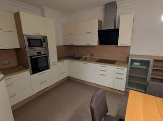 Eine voll ausgestattete, ca. 14,7 m² große Wohnküche mit hochwertigen Geräten (Induktionsherd, Geschirrspüler, Backrohr) lädt zum Kochen ein.