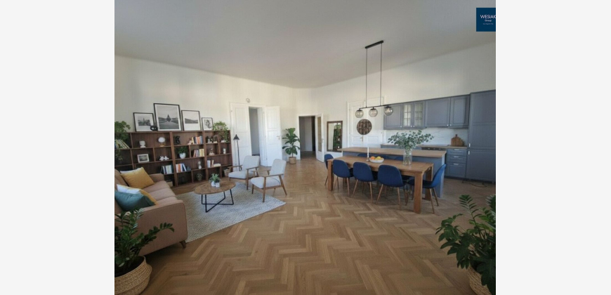 8010 Graz bietet Ihnen alles, was Sie für ein modernes und komfortables Leben benötigen. Mit großzügigen 133,5 m² Wohnfläche und einem durchdachten Grundriss verteilt auf 3 Zimmer ist diese Immobilie perfekt für Paare, Familien oder alle, die viel Platz schätzen. Die Wohnung befindet sich in der 3. Etage eines gepflegten Mehrfamilienhauses und ist bequem mit dem Personenaufzug erreichbar. Die lichtdurchfluteten Räume sind mit hochwertigen Fliesen und elegantem Parkett ausgestattet, die nicht nur für eine ansprechende Optik, sondern auch für ein angenehmes Wohnklima sorgen. Stilvolle Flügeltüren verleihen der Wohnung einen besonderen Altbau-Charme und schaffen ein großzügiges, repräsentatives Wohngefühl. Die moderne Einbauküche lässt das Herz eines jeden Hobbykochs höher schlagen und bietet ausreichend Stauraum sowie alle notwendigen Geräte, um kulinarische Köstlichkeiten zuzubereiten. Das Badezimmer ist ein Rückzugsort der Entspannung und überzeugt sowohl mit einer einladenden Badewanne als auch mit einer separaten Dusche