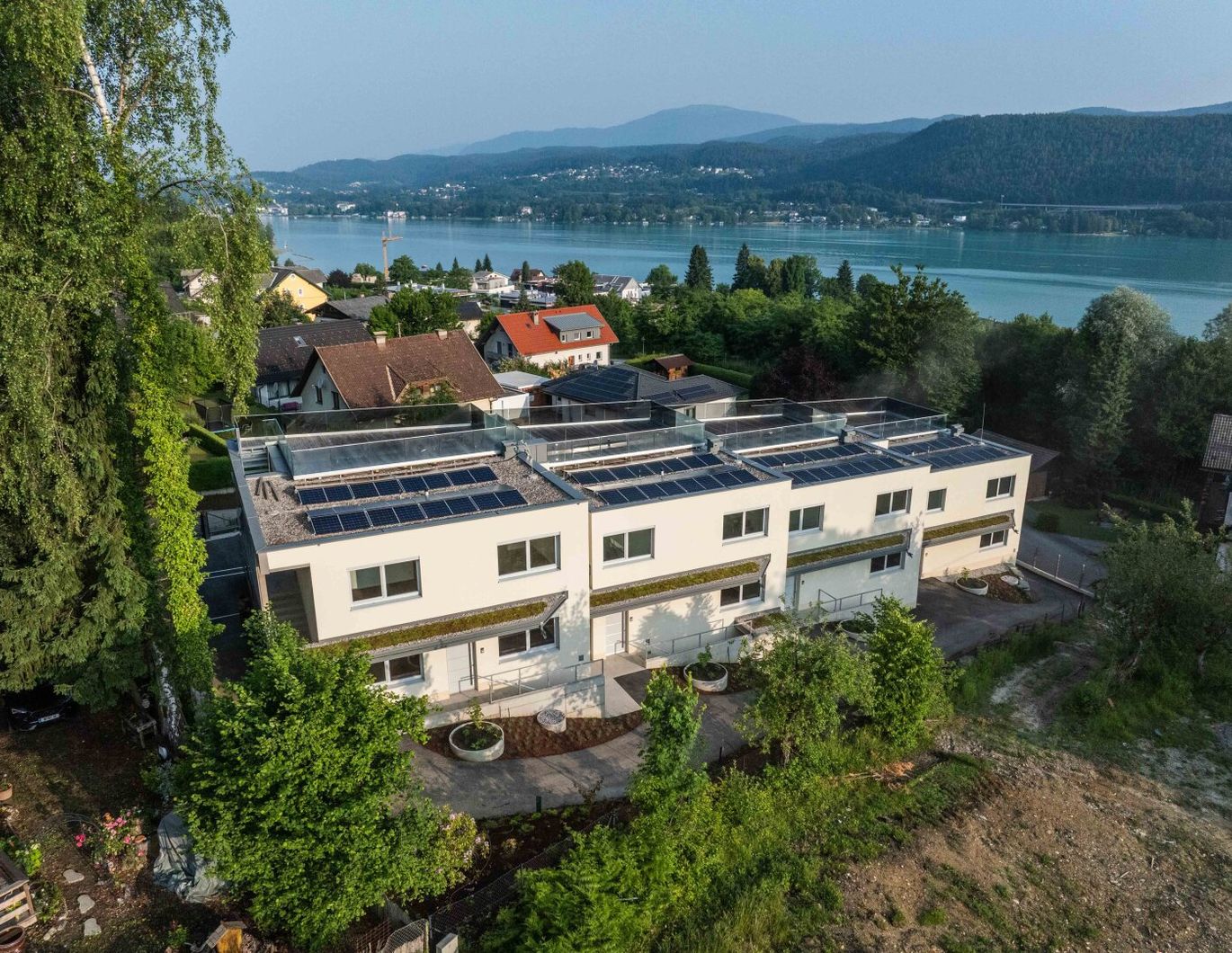 und Sie wissen sofort, was hier auf Sie wartet. Der moderne Entwurf und die exklusive Bauweise dieser vier Häuser setzen einen geschmackvollen Kontrast zur umgebenden Natur. Die moderne Architektur, in den Hang gebaut wie eine Rebzeile Jahrgangsriesling, fügt sich harmonisch in die Landschaft ein. Jedes Haus bietet großzügigen Freiraum zum Wohnen und lichtdurchflutete Zimmer mit einer herrlichen Aussicht. Das Besondere daran, der Wörthersee liegt Ihnen dabei Tag und Nacht zu Füßen. Die Häuser und Wohnungen sind mit besten Materialien und umweltbewusster Technik ausgestattet. Eine hauseigene, energieeffiziente PV-Anlage sorgt für nachhaltige Energie, während Fußbodenheizung und Raumkühlung über Luftwärmepumpen betrieben werden. Hochwertige Parkettböden, Holz-Alu-Fenster aus Österreich und edles Feinsteinzeug in den Bädern und WCs schaffen eine außergewöhnliche Wohnqualität und machen Ihr Zuhause zu einer echten Wohlfühloase. Drei stilvolle Häuser und zwei exklusive Wohnungen, die mit Bedacht, Qualität und Leidenschaft für das Besondere gebaut wurden. Wenn Sie ein Zuhause suchen, das sowohl Ruhe als auch Exklusivität bietet, sind Sie hier genau richtig.