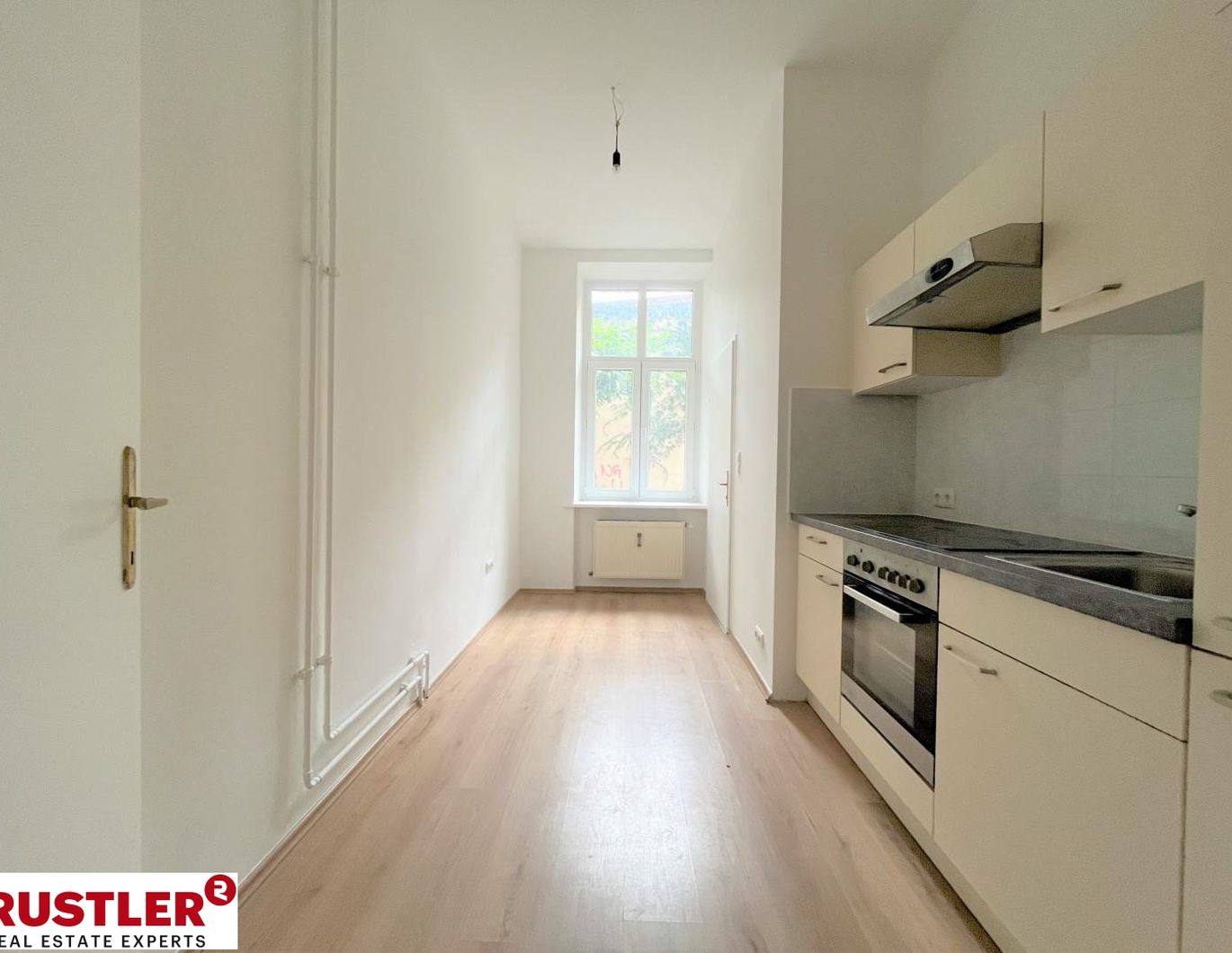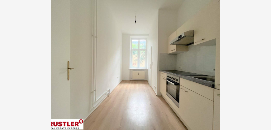 Im Erdgeschoss eines gepflegten Zinshauses bietet die Wohnung eine klare, alltagstaugliche Aufteilung. Zwei separat begehbare Zimmer werden von einer möblierten, separaten Küche ergänzt