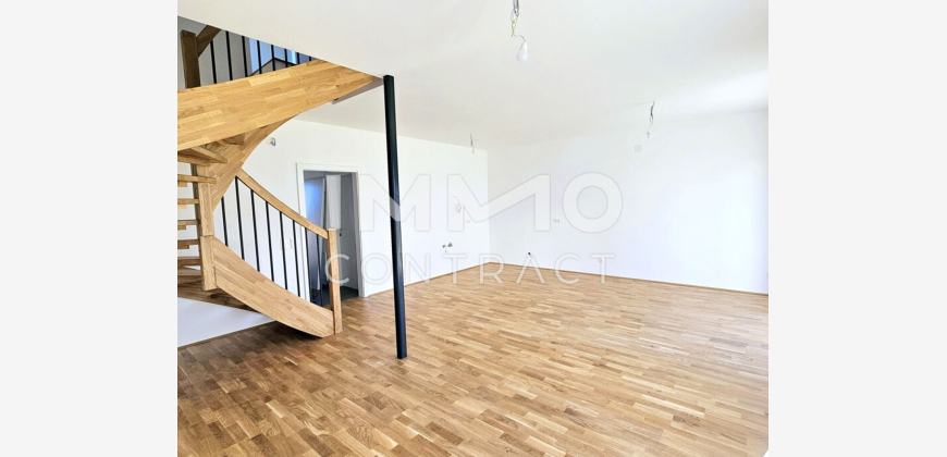 • so haben Sie die Möglichkeit, Ihre eigenen Einrichtungsideen umzusetzen. Über eine offene Holztreppe gelangen Sie ins 1. Obergeschoß mit 3 großzügigen Schlafzimmern, geräumigem Bad mit Badewanne, Dusche, Doppelwaschbecken und Fenster, und einem separaten WC.
