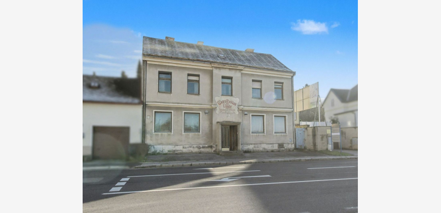 Der bestehende Altbau, ein ehemaliges Gasthaus aus dem Jahr 1894, umfasst ca. 200 m² Wohn- bzw. Nutzfläche auf Erd- und Obergeschoß sowie ein unausgebautes Dachgeschoß. Im Inneren stehen 6 Zimmer, darunter 4 mögliche Schlafzimmer, ein großer Gastraum mit Schank, eine angrenzende Küche sowie mehrere Nebenräume zur Verfügung. Der Zustand ist komplett sanierungsbedürftig und bietet damit Potenzial für eine Kernsanierung, eine moderne Umgestaltung oder einen potenziellen Neubau im Rahmen der geltenden Bauvorschriften. Besonders charmant wirken der Innenhof mit ca. 60 m² sowie die Terrasse im Obergeschoß mit ca. 15 m², die Raum für zukünftige Freiflächenkonzepte schaffen. Das Gebäude ist teilunterkellert (Erdkeller) und besteht aus Ziegelmassivbauweise. Beheizt wurde es zuletzt über eine funktionsfähige Nachtspeicherheizung. Ob Aufwertung des historischen Bestands, Schaffung neuer, individueller Wohnideen oder als langfristige Investmentlösung
