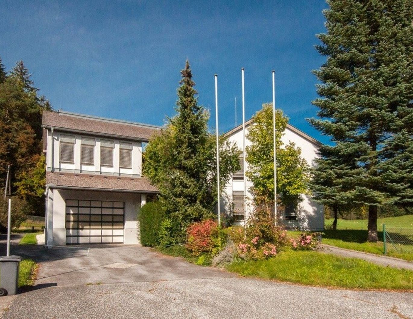 direkt am Grenzübergang zwischen Kärnten und Slowenien in Bleiburg. Das Gebäude besteht aus drei Geschossebenen, wobei sich im Erd- und Obergeschoss Büroflächen befinden und im Untergeschoss Archiv- und Lagerräumlichkeiten. Darüber hinaus sind alle drei Ebenen mit getrennten Sanitärbereichen ausgestattet, im Untergeschoss auch mit Duschen. Im Außenbereich stehen rund 10 PKW-Stellplätze und eine große Garage zur Verfügung. Verfügbarkeit: ab sofort