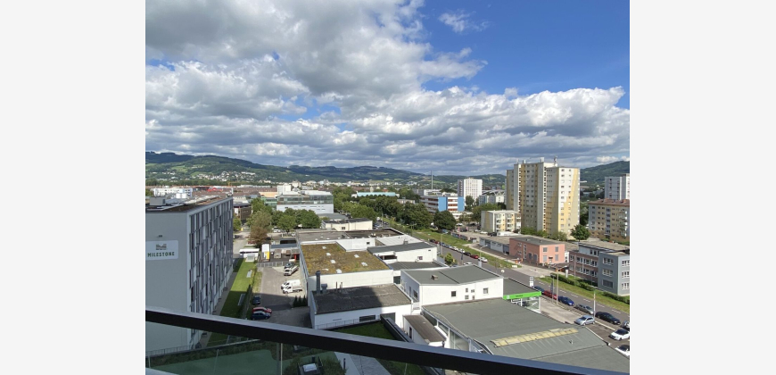 Hereinspaziert in diese gemütliche Wohnung. Der Eingangsbereich bietet ausreichend Platz für eine Garderobe/großen Schrank. Der offenen, helle Wohn-Ess-Schlafraum ist mit einer modernen Küche ausgestattet. Das Badezimmer ist mit einer Dusche, WC und WM-Anschluss ausgestattet. Besonders toll ist der große ca 8m² Balkon mit herrlichem Blick in die Ferne. Ein großzügiger Grünraum für alle Bewohner lädt zum Kraft tanken und zur Erholung ein. Die Servicevielfalt im BRUCKNER TOWER lässt keinen Wunsch offen: ob im hellen Eingangsbereich mit dem Empfang