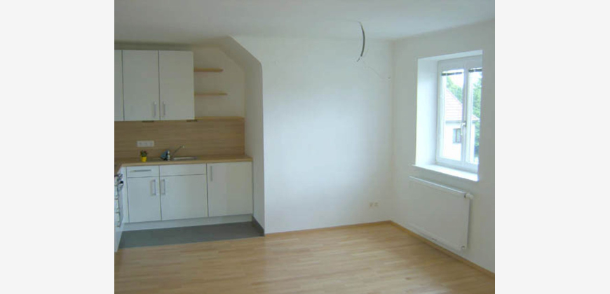 Vom Vorraum aus gelangt man in die Wohnküche und ins Badezimmer mit WC. Das zweite Zimmer ist über die Wohnküche erschlossen. Die Wohnung ist südseitig ausgerichtet. Geheizt wird mittels Gasetagenheizung. Ein Kellerabteil steht ebenfalls zur Verfügung. Aufgrund der zentralen Lage, der guten