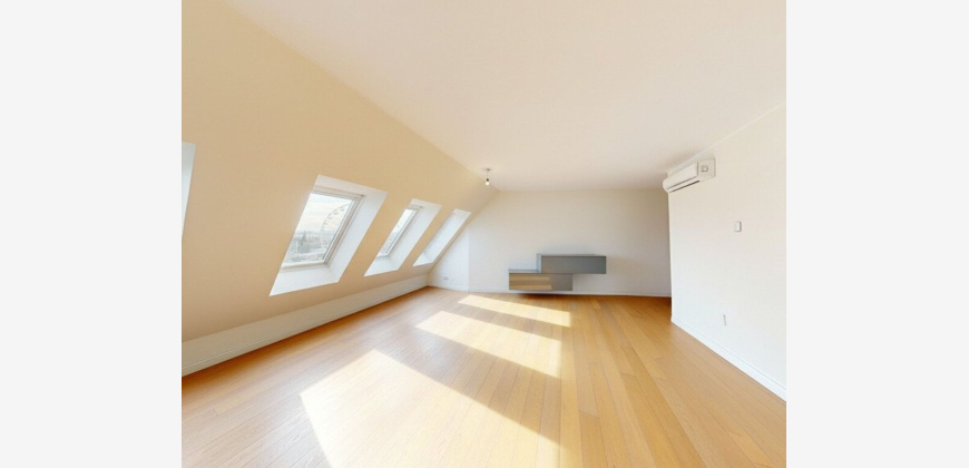 The apartment is located on the top floor with elevator access and is oriented to the north (bedroom, kitchen) and south (living room). The total living space is approximately 91 m² and includes a living room, bedroom, open-plan kitchen, bathroom, entrance hall, and separate WC. A standout feature of the apartment is the luxury kitchen equipped with Miele appliances, including a wine cooler. The apartment is partially furnished, offering high-quality built-in wardrobes in the bedroom and hallway, as well as a bed and living room shelving units. The sofa will be removed. A basement storage unit (typical for an older building, reasonably dry) is included. There is also an inner courtyard available for bicycle parking. Underfloor heating and three air conditioning units (living room, bedroom, kitchen) are installed. A connection for a private washing machine is available. The windows are equipped with blackout options. The ceiling height of 2.80 m creates an airy, classic Altbau-style atmosphere. Parking: Monitored long-term parking spaces can be optionally rented in the Garage Prater/Ausstellungsstraße (approx. 1-minute walk) for €136 per month. Proof of creditworthiness is required. For students, a parental guarantee is possible. The following documents are accepted as proof of financial reliability: