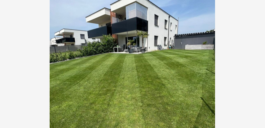Die sehr helle Wohnung verfügt über eine perfekte Raumaufteilung, befindet sich im Erdgeschoß und hat eine Wohnfläche von in etwa 50m2. Neben einem gut dimensionierten Vorraum sowie dem Gang, verfügt die Wohneinheit über einen Abstellraum, WC- und Badezimmer, ein Schlafzimmer und einen geräumigen Wohn-Ess-Bereich, von welchem Sie direkt in Ihren circa 200m2 großen Eigengarten gelangen. Weiters verfügt die Wohnung über einen Kellerersatzraum im Bereich des Carports. Neben der hochwertigen Ausstattung ist sicherlich der große Eigengarten, die große Glasfront, sowie der gute Grundriss eines der vielen Highlights dieser Wohnung. Alle Fenster sind von der Firma Actual und verfügen über elektrische Jalousien. Die Einbauküche ist eine Dan-Designer-Küche mit LED Elementen. Im Sanitärbereich wurde italienischer Feinstein und Laufen Armaturen verbaut. Die gesamte Wohnung verfügt über eine Fußbodenheizung. Neben den niedrigen Betriebs- und Energiekosten genießen Sie noch den Luxus eines eigenen Carport-Parkplatzes, sowie eines zugeordneten Parkplatzes im Freien. Beide sind direkt bei der Wohnung. Bei der Errichtung der Immobilie wurde in keinster Weise gespart, wobei beispielsweise der Glitzerputz der Hausfassade, die hochwertige Innenausstattung, sowie die Photovoltaikanlage auf dem Dach erwähnt werden kann, wodurch Ihr Strom direkt am Gebäudedach erzeugt wird. Eingebettet in eine kleine Wohnsiedlung verfügt das Objekt über nur vier Wohneinheiten. Dies ist eine absolute Seltenheit in dieser