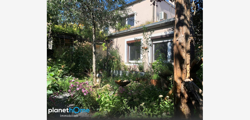 auf zwei Ebenen. Ergänzt wird das Raumangebot durch ca. 14 m² Holzlager und Technikraum im Nebengebäude. Das Haus befindet sich auf einem ca. 199 m² großen Grundstück, das sich als echte Grünoase präsentiert
