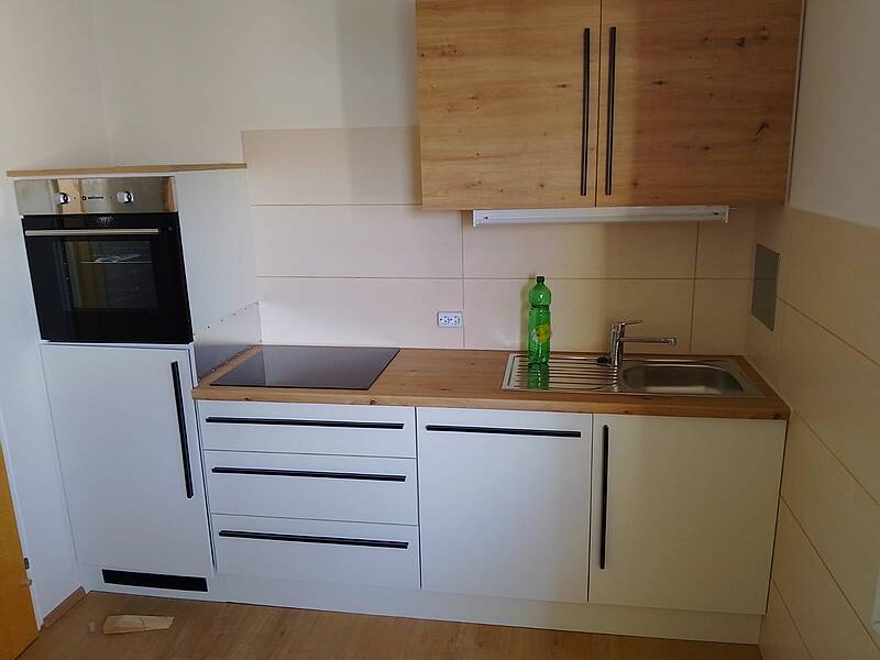 Neu eingerichtete Küche; WC , Bad mit Badewanne; Wonzimmer und 2 Schlafzimmer sind ohne Möbel. Mietpreis inkl.Betriebskosten: 825 Euro monatl.