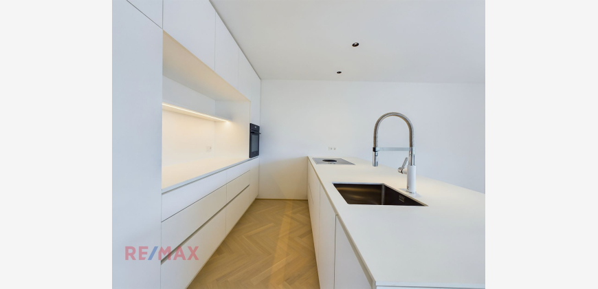 Einbauküche Maßfertigung vom Tischler Küchengeräte der Marken Bora und Siemens Hochwertiger Fischgrat-Parkett Raumhohe Türen Aufbewahrungsbox auf dem Balkon Warmwasseraufbereitung mittels Solaranlage Südwest-Ausrichtung inkl. 1 TG-Platz