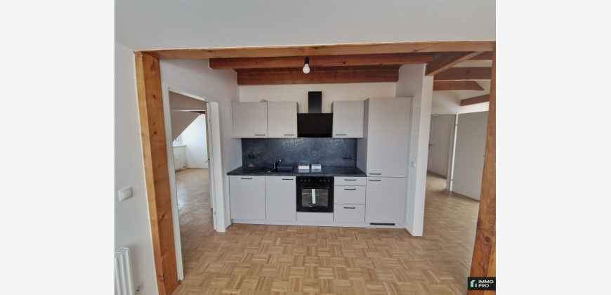 Vorraum, Badezimmer, Toilette, Wohnküche mit Küchenzeile mit E-Herd mit Ceranfeld, Geschirrspüler, Dunstabzug (Umluft), Kühlschrank mit Gefrierkombination, Schlafzimmer, Kinderzimmer, Galerie. Die Wohnung wird auf 5 Jahre befristet vermietet. Es wird ein Kündigungsverzicht von 1 Jahr und einer darauffolgenden 3-monatigen Kündigungsfrist vereinbart. Der Wohnung ist ein Parkplatz zugeordnet und ist im Preis enthalten. Es fällt eine Kaution von € 2.150,-- an. Der Bezug ist voraussichtlich ab Februar 2026 möglich! Die Sanierungsarbeiten sind derzeit noch im Gange.
