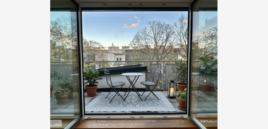 Diese sehr hochwertig und stilvoll ausgebaute Dachterrassenwohnung befindet im Dachgeschoss eines sehr repräsentativen Altbaus mit Palais-Charakter. Die Wohnung ist hell und offen gestaltet und eignet sich perfekt für großzügiges, modernes Wohnen am Puls der Stadt! Aufteilung: Ebene 1