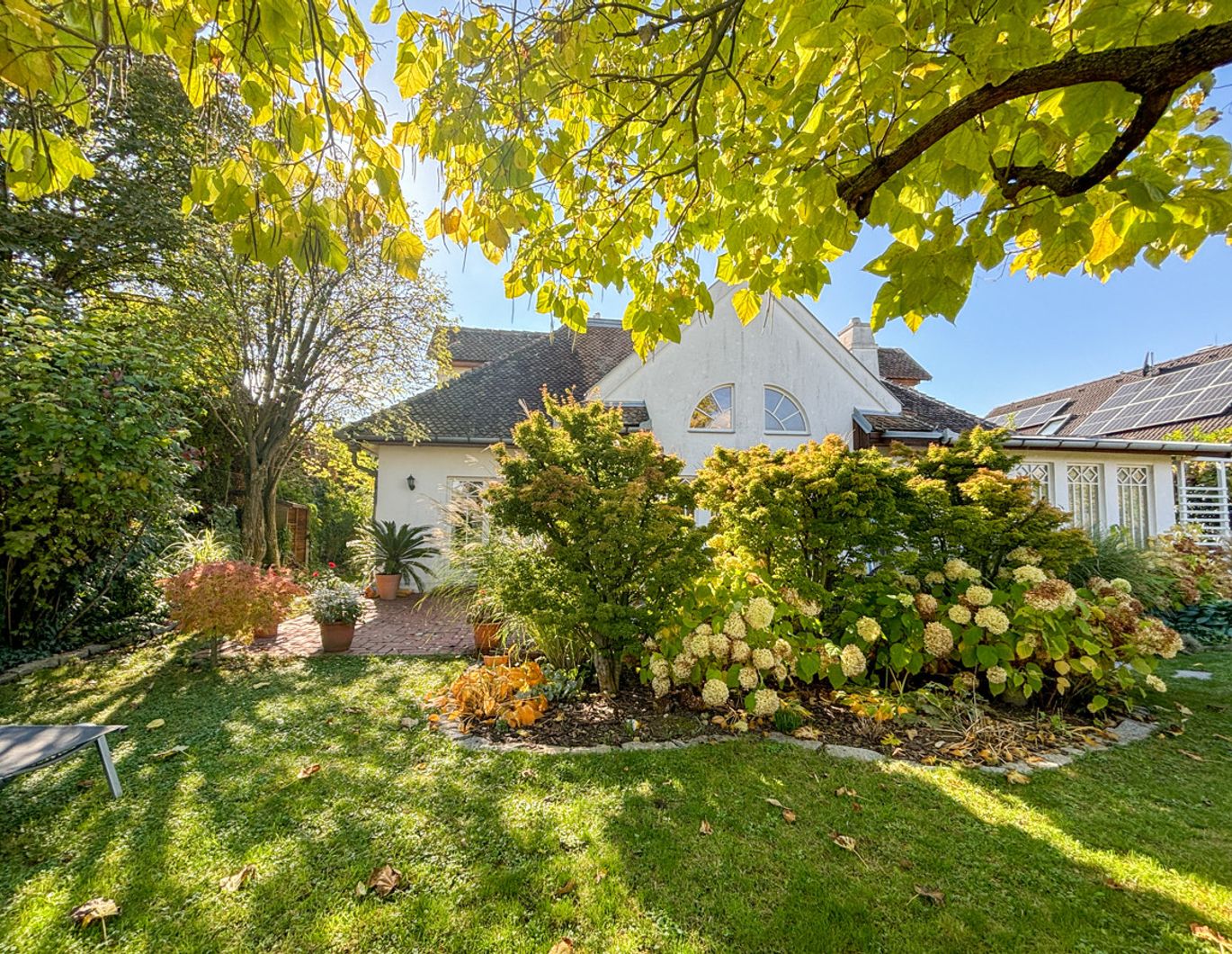 Objektnummer: 4432 Dieses einzigartige Einfamilienhaus im Toskana-Stil bietet auf 246m² Wohnfläche und einem Grundstück von 894m² ein unverwechselbares Wohngefühl. Das Herzstück des Hauses ist der großzügige Wohn-Ess-Küchenbereich, ausgestattet mit einem Kachelofen mit Sichtfenster. Vom Wohnzimmer aus gelangt man direkt auf die Terrasse, welche einen schönen Übergang zum unglaublich schönen Garten mit Naturpool bietet. Dieser Naturpool von Kittenberger verwendet ein Bio-Micro-Organ-System zur biologischen Wasseraufbereitung