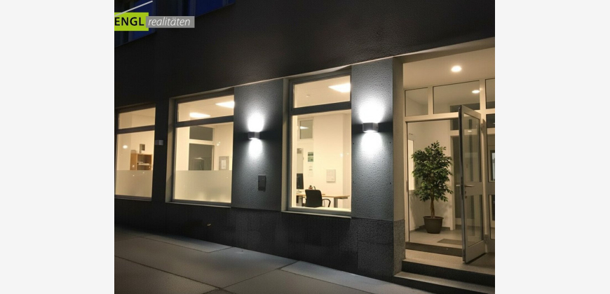 Das Geschäftslokal liegt im Erdgeschoss und ist direkt von der Straße aus mit repräsentativen Eingang begehbar. Es befindet sich in einem gepflegten Neubau (BJ ca.1994) und ist ebenfalls über das Stiegenhaus zugänglich. 2 Tiefgaragenplätze sind zugeordnet. Derzeit werden die gut aufgeteilten 276m² gewerblich genutzt. Das Lokal kann als Büro, Lagerfläche, Showroom, Ordination, Kanzlei sowie für Arbeiten und Wohnen und vieles mehr genutzt werden. Das anschiessende Apartment mit Blick in den begrünten Innenhof kann ebenfalls als Besprechungsraum verwendet werden. Das Lokal eignet sich ausgezeichnet als Büro jeglicher Art wie z.B. Büro, Arbeiten und Wohnen, Lager, Architkturbüro, Kanzlei sowie als Ordination. Separater Eingang und grosse Auslagenfront.