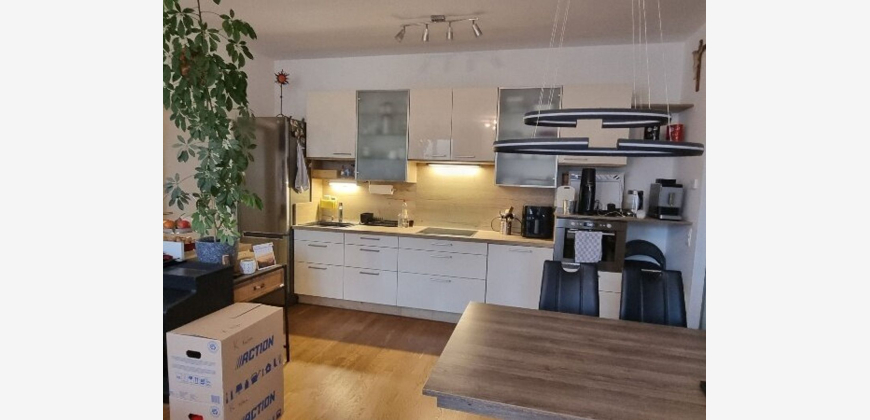 Vermietet wird das Innere der Wohnung Top D2 mit einem Ausmaß von 56,64 m 2 , bestehend aus Vorraum, Bad/WC, Wohnküche und Schlafzimmer. Mitvermietet wird der Eigengarten mit ca. 90 m² und das Kellerabteil Nr. D2 sowie ein nicht explizit zur jeweiligen Wohneinheit zugeordneter PKW-Abstellplatz an der dafür vorgesehenen Privatparkplatzfläche.