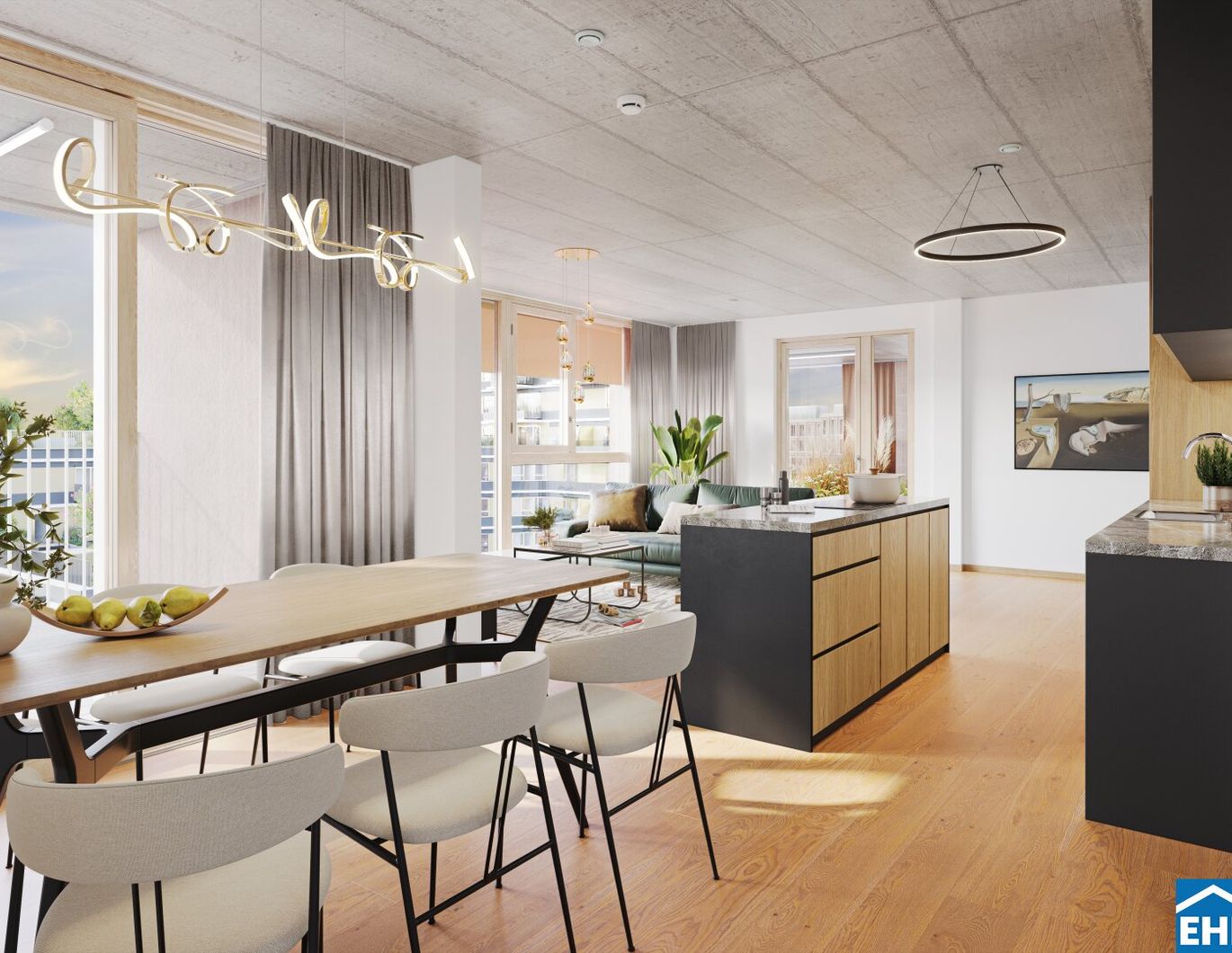 Die Einzigartigkeit des Projektes wird durch die architektonische Gestaltung hervorgehoben, Großteils mit Sichtbetondecken und durch die Vor- bzw. Rücksprünge entstehen Sichtverbindungen die den Wohnungen eine außergewöhnliche Großzügigkeit und ein loftartiges Ambiente verleihen. Ergänzt wird das Angebot im Haus mit einem 2-geschoßigen Boulderraum und einem Multifunktionsraum mit großer Terrasse, zwei Gewerbeflächen sowie einer Tiefgarage. Die Wohnungen sind in Größen von 43 bis 131 m² geplant und bieten flexible Grundrisse für unterschiedlichste Bedürfnisse