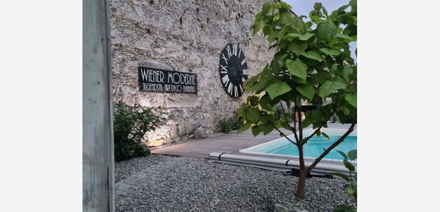direkt an der Stadtmauer mit Blick über die Enns und hinein ins Ennstal. Das vollständig ausgebaute Dachgeschoss präsentiert sich als elegante Hauptwohneinheit mit drei großzügigen Zimmern, die durch ihre Helligkeit und Raumwirkung beeindrucken. Der direkte Zugang zum privaten Garten ist ein absolutes Highlight: Eine grüne Oase mit altem Baumbestand, liebevoll angelegten Ruhebereichen und einem unvergleichlichen Panorama und eigenem Pool & Außendusche. Die