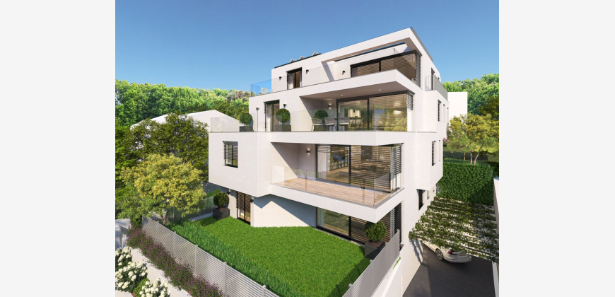 Die Liegenschaft in der Steinmüllergasse 44 befindet sich an den Ausläufern des Wilhelminenbergs in Ottakring, im Grätzl Sandleiten, dem schönsten Viertel des 16. Wiener Gemeindebezirks. An diesem westlichen Rand von Ottakring lockt das Naherholungsgebiet mit dem Wilhelminenberg und dem Wienerwald mit Wanderwegen, der Steinbruchwiese, Steinhofwiese, Kreuzeichenwiese, Moosgraben, Jubiläumswarte und vielem mehr. Das geplante Wohnhaus mit 4 exklusiven Eigentumswohnungen in absoluter Ruhelage am Fuße des Wilhelminenbergs liegt auf einer Anhöhe an einem Sonnenhang. Die gut durchdachten Grundrisse der geplanten vier großzügigen Wohnungen weisen eine Wohnfläche zwischen etwa 131m² bis 177m² auf und verfügen alle über großzügige Garten- oder Terrassenflächen. Die terrassierte Hanglage in absoluter Grünruhelage bietet einen wunderschönen Ausblick. Die vorgesehene elegante und moderne Architektur in der Steinmüllergasse 44 sowie höchste Bauqualität und innovative, exklusive Ausstattung abgerundet durch Designelemente bieten höchsten Wohnkomfort und herausragende Lebensqualität zum Wohlfühlen! Mit fast 38% Grünfläche und davon 22% Waldgebiet lädt die Region Wilhelminenberg zur Erholung und Entspannung ein, aber doch befindet man sich in der Stadt! Aufgrund der vielen Grünflächen in der Umgebung gibt es eine außerordentliche Vielfalt an Freizeitmöglichkeiten, wie den 2 Autominuten nahegelegenen Kongresspark mit Kongressbad und das nur 6 Autominuten entfernte Schafbergbad am Schafberg. Weitere Freizeithöhepunkte und beliebte Ausflugsziele in unmittelbarer Umgebung sind der Wilhelminenberg mit dem Schloss Wilhelminenberg, der Ottakringer Wald, die Jubiläumswarte, die Otto König Warte, die Steinbruchwiese und die Stadtwanderwege 3, 4 und 4a.