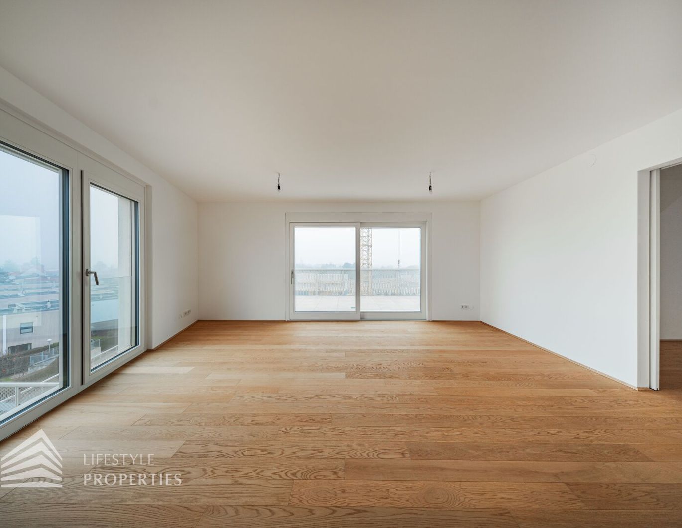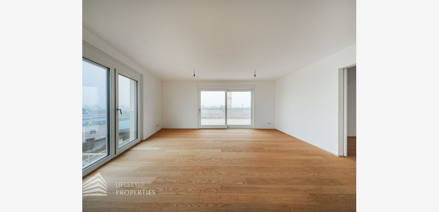 Zum Verkauf gelangt diese 4-Zimmer Wohnung mit Balkonen und Dachgarten im schönen 21. Wiener Gemeindebezirk. Die Wohnung ist ein Erstbezug, befindet sich im 4. Liftstock und hat eine Größe von ca. 100,02 m² und gliedert sich in eine Wohnküche, drei Schlafzimmer eines davon mit Zugang zu einem der Balkone, einen Vorraum, ein Bad mit Badewanne, Waschbecken, Handtuchtrockner und WC, ein weiteres Bad mit Dusche, Waschbecken, Handtuchtrockner und Waschmaschinenanschluss und ein separates WC. Von der Wohnküche und von einem der Zimmer gelangen Sie auf den großen Balkon und zum Dachgarten. Alle Zimmer sind mit schönem Eichenparkett ausgestattet, die Nassräume sind verfliest. Die Wohnungen werden mittels Fußbodenheizung über eine Luft-Wärmepumpe geheizt, eine Deckenkühlung sorgt in den warmen Monaten für angenehme Temperaturen und Vorrichtungen zum Einbau einer Klimaanlage sind auch vorhanden. Weiters sind elektrisch betriebene Außenjalousien / Raffstores vorhanden. Ein Platz in der hauseigenen Tiefgarage kann zusätzlich erworben werden. Nur wenige Gehminuten von der Alten Donau und dem Donau Zentrum entfernt entsteht dieses großartige Neubauprojekt auf Eigengrund mit insgesamt 22 Eigentumswohnungen. Beste öffentliche Verkehrsanbindung, die sehr gute Nahversorgung und abwechslungsreiche Freizeitmöglichkeiten in 5 Minuten Fußweg Entfernung garantieren höchste Lebensqualität. Genießen Sie den perfekten Mix aus Naherholungsgebiet und Stadtnähe, sowie die vielzähligen Freizeitmöglichkeiten in unmittelbarer Nähe, welche eine hohe Lebensqualität garantieren. Die Alte Donau, sowie der Donaupark und diverse Strandbäder sind praktisch nebenan und hat man schnell, nach einem kurzen Spaziergang, erreicht. Vielfältige Einkaufsmöglichkeiten erwarten Sie im nahegelegenen Donauzentrum mit über 200 Shops, aber auch Kindergärten, Schulen und Ärzte befinden sich in unmittelbarer Nähe. Die U1 Station Kagran ist innerhalb von 5 Minuten Fußweg erreichbar. Die Straßenbahnstationen 2, 25 und 26 befinden sich in unmittelbarer Entfernung. Die Vertragserrichtung und Treuhandabwicklung ist gebunden an die Kanzlei Steiner & Hofstetter Rechtsanwälte in 1010 Wien. Die Kosten betragen 1,5% + 20% Ust + Barauslagen.