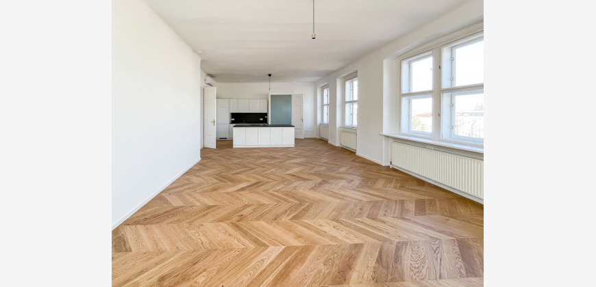 In bester Innenstadtlage am Donaukanal und nahe dem Schwedenplatz wurde soeben diese schöne 4-Zimmer Wohnung generalsaniert. Sie befindet sich im 4. Liftstock, ist besonders hell und bietet einen fantastischen Blick. Die Wohnung erstreckt sich insgesamt auf über 136 m², zählt vier Zimmer und teilt sich wie folgt: zentraler Vorraumbereich, Abstellraum, hofseitiges Schlafzimmer (ca. 10 m²), Badezimmer mit Wanne, Dusche, Doppelwaschtisch und Waschmaschinenanschluss, separates WC mit Handwaschbecken, zweites Schlafzimmer (ca. 25 m²), großzügige Wohnküche (ca. 53 m²), drittes Schlafzimmer (ca. 24,5 m²).